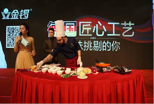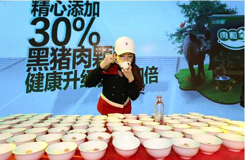 在現(xiàn)場,汪涵更是以無淀粉產(chǎn)品代言人的身份和現(xiàn)場經(jīng)銷商進(jìn)行了互動,《豬豬俠》人偶豬豬和菲菲也以金鑼哈啰伙伴系列產(chǎn)品代言人的身份進(jìn)行了萌翻眾人的表演,《畫江湖之不良人》主創(chuàng)團(tuán)隊(duì)則以cosplay的形象出現(xiàn)在舞臺上,帶來了一場如夢似幻的視覺盛宴。而YY當(dāng)紅大胃王女主播袁瑞彤PK三壯漢,10分鐘吃下70碗金鑼肉粒多拌面更是將現(xiàn)場氣氛推向高潮;外籍大廚阿爾伯特用德斯克制作三道色香味俱全的德式美食,也讓臺下經(jīng)銷商欲罷不能。這些豐富的代言形式,讓在場的經(jīng)銷商全部耳目一新,留下了深刻的品牌印象。也正是在代言人的推動下,短短兩個小時訂貨量便突破了1.15億。